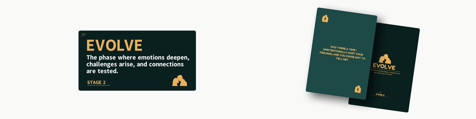 There are 100 cards total, including a mix of questions and wildcards, divided into three relationship-building levels: Ignite, Evolve, and Thrive.